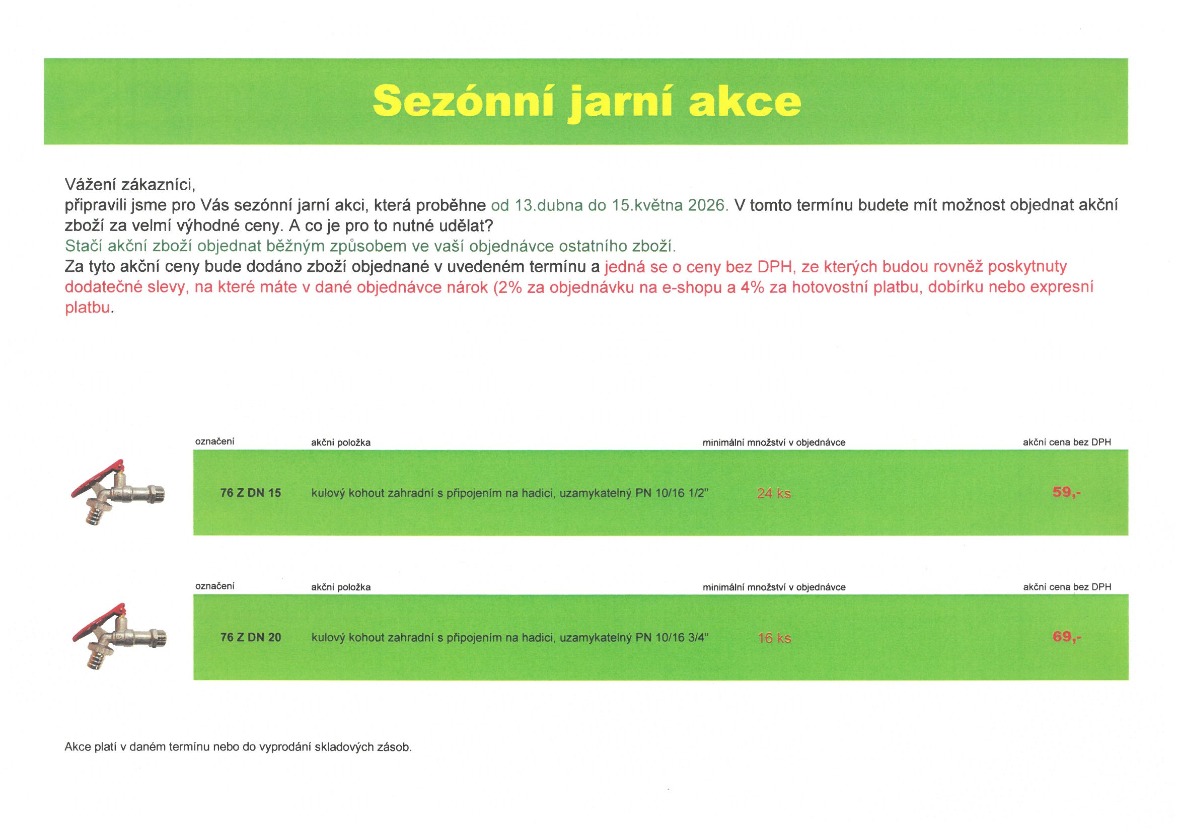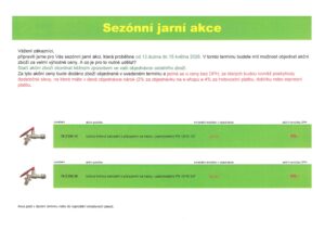 připravili jsme pro Vás sezónní jarní akci, která proběhne v termínu od 13.dubna do 15.května 2026.